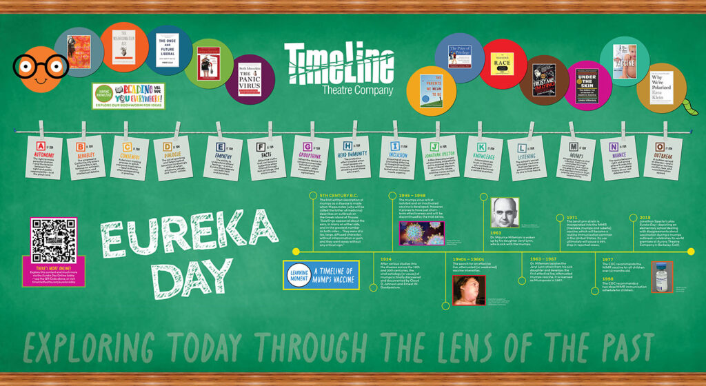 Join from the comfort of your home! You’re invited to enjoy two upcoming online/virtual discussions exploring behind-the-scenes and the various themes of Eureka Day. Each conversation will last approximately one hour. FREE reservations are required; only those who register will receive the Zoom details to attend.